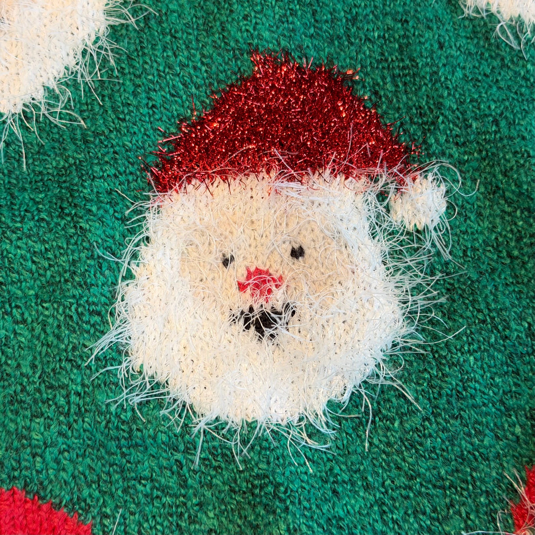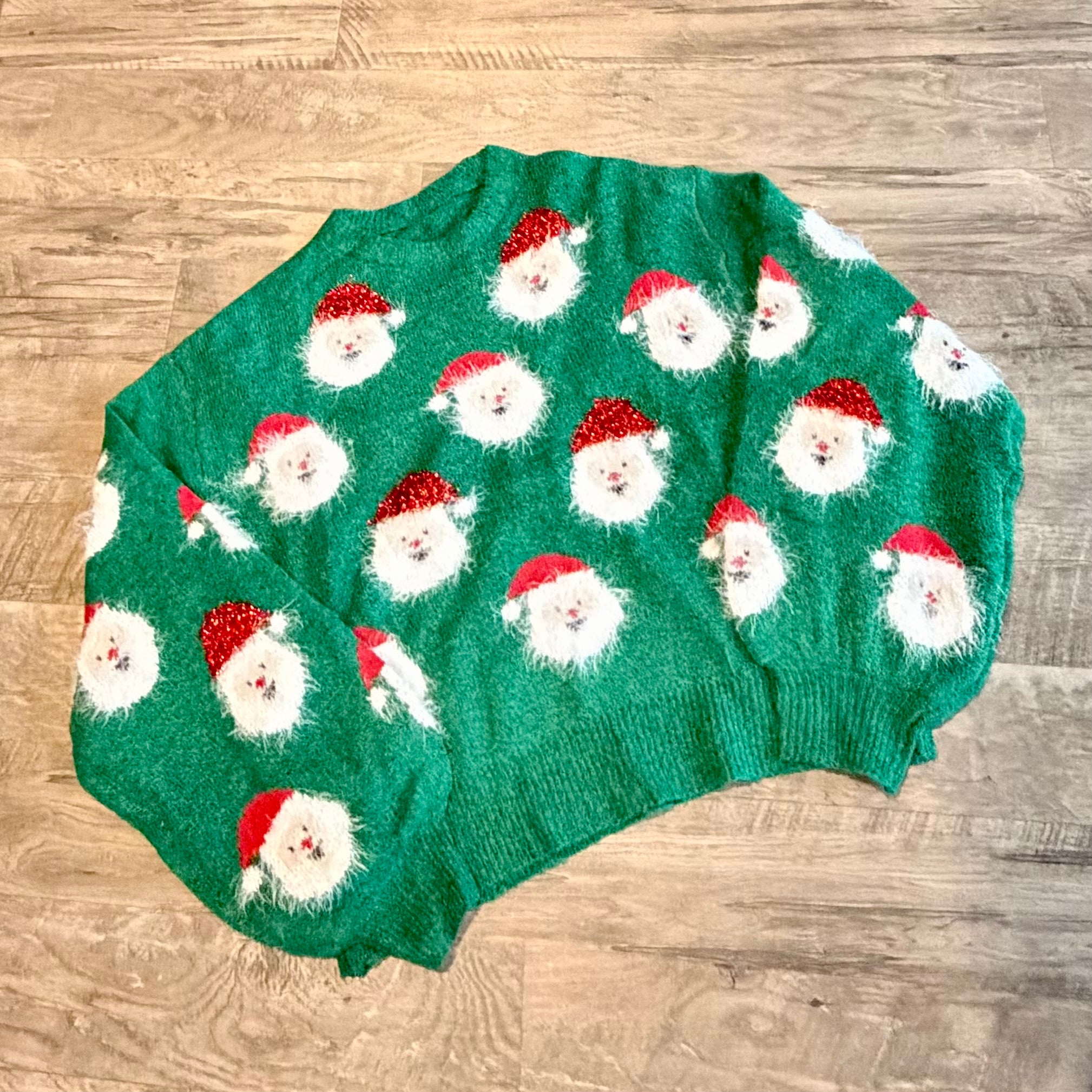 Features: A super soft Santa sweater with a little sparkle, rounded neckline and balloon sleeves